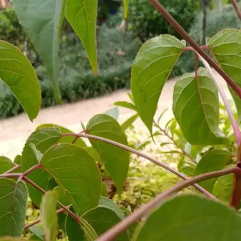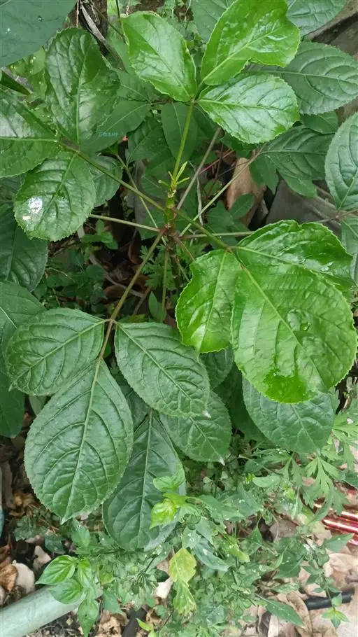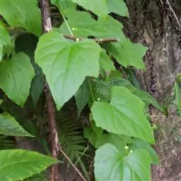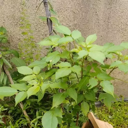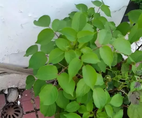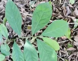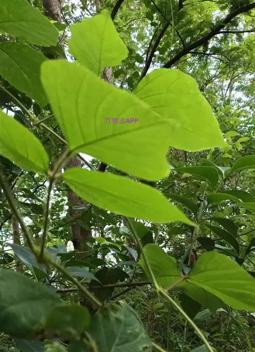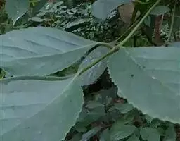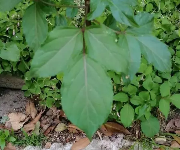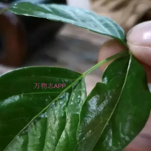 三出复叶;叶柄长9-13.5厘米;顶生小叶通常较两侧的大,小叶片纸质,卵形或椭圆状卵形,有时长圆状卵形,长5-9(14)厘米,宽3-6(9)厘米,顶端突尖或短渐尖,基部圆或浅心形,边缘具钝细锯齿每1厘米长4-5个;顶生小叶柄长1.5-4(6)厘米,侧生小叶柄长3-14毫米;托叶小,早落。