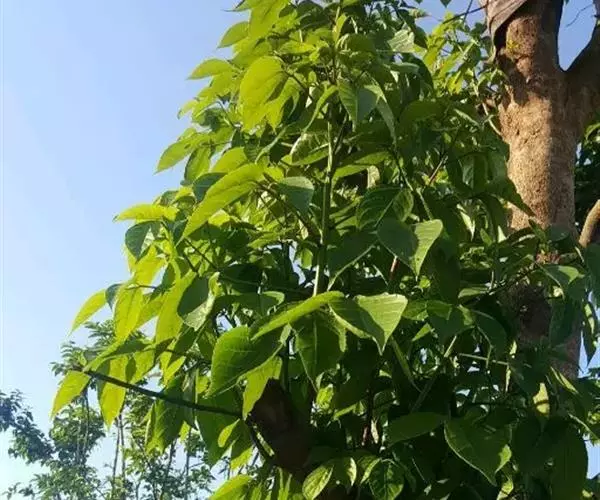 一般采用大田条播育苗。3月中旬,在播种前用50%多菌灵800倍液对苗床消毒,当种子胚根长到1cm时,开始播种。播种时,断去部分胚根,按行距20cm、株距9cm进行条播,播种量为30.0~37.5kg/hm。播后盖0.5cm厚的细土,淋透水,并搭建2m高的90%遮阳棚,以保证其幼苗不受日灼危害。播种行距约20cm,每亩播种量2~2.5kg。覆土厚约0.5厘米,上盖草。播后20~30天幼苗出土,发芽率40~80%。1年生苗高约50cm,最高可达1m以上。苗木主干下部易生侧枝,要及时剪去,使其在一定的高度分枝。移栽要掌握在芽萌动时带土球进行,这样成活率高。