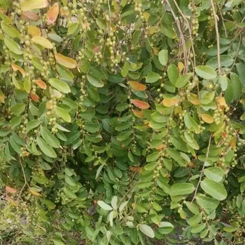 果实浆果状,圆球形,直径5-7毫米,成熟时褐红色。花期在4-5月,果期10-11月。