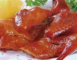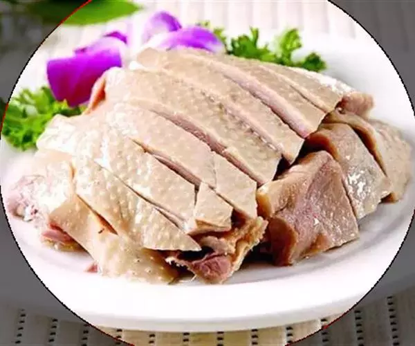 桂花鸭 南京盐水鸭是中国历史上唯一一种低温畜禽产品,和传统的腌腊制品完全不一样。盐水鸭咸甜清香,口感滑嫩。肉玉白,油润光亮,皮肥骨香,鲜嫩异常,咸鲜可口。盐水鸭是低温熟煮,经过一个小时左右的煮制,使得盐水鸭的嫩度达到一定程度。低温熟煮盐水鸭肌肉储水性好,保持了鸭肉的多汁性。而高温煮制的腌腊制品会破坏其风味,让人闻起来香,吃起来口味却一般。另外,桂花鸭制作考究,除用料好外,而且工艺精,“炒盐腌,清卤复”,增加鸭的香醇,“炒得干”减少鸭脂肪,此薄且收得紧,“煮得足”,食之有嫩香口感。