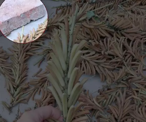 叶簇生,二型。不育叶的柄长3-40厘米,粗10-13厘米,绿色,圆柱形,肉质,不膨胀,上下几相等,光滑无毛,干后压扁;叶片直立或幼时漂浮,有时略短于能育叶,狭长圆形,长6-30厘米,宽3-15厘米,先端渐尖,基部圆楔形,二至四回羽状深裂,裂片5-8对,互生,斜展,彼此远离,下部1-2对羽片较大,长可达10厘米,宽可达6.5厘米,卵形或长圆形,先端渐尖,基部近圆形、心脏形或近平截,一至三回羽状深裂;小裂片2-5对,互生,斜展,彼此分开或接近,阔卵形或卵状三角形,长可达35厘米,宽可达3厘米,先端渐尖、急尖或圆纯,基部圆截形,有短柄,两侧有狭翅,下延于 水蕨 羽轴,深裂;末回裂片线形或线状披针形,长可达2厘米,宽可达6毫米,急尖头或圆钝头,基部均沿末回羽轴下延成阔翅,全缘,彼此疏离;第二对羽片距基部一对3-5厘米,向上各对羽片均与基部羽片同形而逐渐变小。能育叶的柄与不育叶的相同;叶片长圆形或卵状三角形,长15-40厘米,宽10-22厘米,先端渐尖,基部圆楔形或圆截形,二三回羽状深裂;羽片3-8对,互生,斜展,具柄,下部1-2对羽片最大,长可达14厘米,宽可达6厘米,卵形或长三角形,柄长可达2厘米;第二对羽片距第一对1.5-6厘米,向上各对羽片均逐渐变小,一至二回分裂;裂片狭线形,渐尖头,角果状,长可达1.5-4(6)厘米,宽不超过2毫米,边缘薄而透明,无色,强度反卷达于主脉,好像假囊群盖。主脉两侧的小脉联结成网状,网眼2-3行,为狭长的五角形或六角形,不具内藏小脉。叶干后为软草质,绿色,两面均无毛;叶轴及各回羽轴与叶柄同色,光滑。