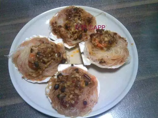 4. 把用温水泡软的粉丝放到扇贝上;