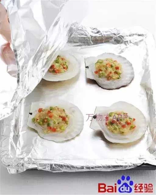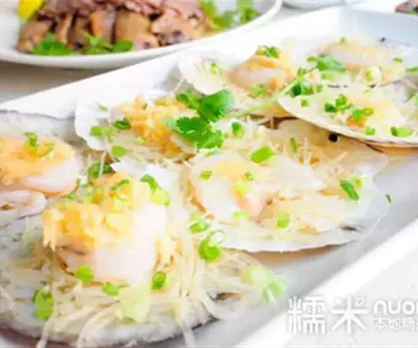 9. 蒸锅水开后放入扇贝,蒸八分钟即可;