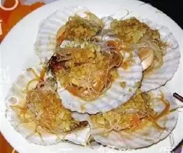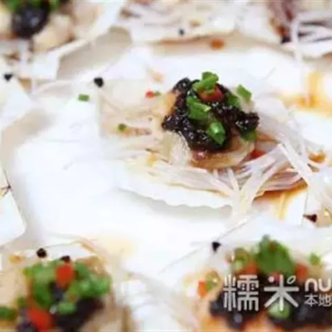 豉汁扇贝,山东威海著名的特色小吃,做法简单,咸鲜味十足。扇贝放在装有清水的盆里泡上一个小时;然后用刷子刷干净外壳;把扇贝用小刀撬开,把内脏及腮去除;把用温水泡软的粉丝放到扇贝上;大蒜成蒜蓉;在炒锅里放油把蒜蓉炒出香味盛出;趁热把蒜蓉油分别放在每个扇贝的粉丝上面;在扇贝上均匀的浇上蒸鱼豉油;蒸锅水开后放入扇贝,蒸八分钟即可;出锅后放上些香葱碎做点缀。
