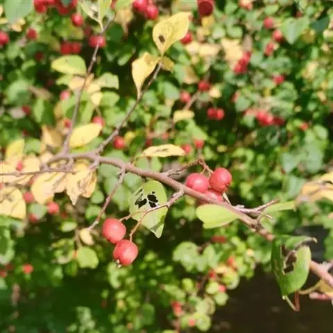 火棘 H. L. Li)是蔷薇科火棘属常绿灌木,老枝呈暗褐色;叶片呈倒卵形,边缘有钝锯齿,齿尖向内弯,…