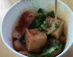 冷却后切成小方块拌以作料就成为酉阳特色美食,大人小孩喜爱有加。