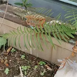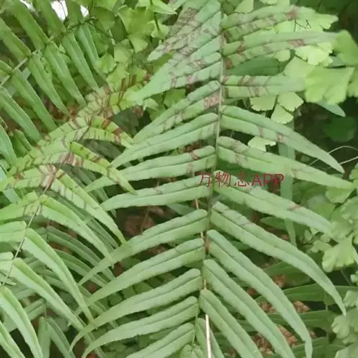 蜈蚣草(学名:Pteris vittata L.,)是凤尾蕨科,凤尾蕨属陆生蕨类植物。植株高可达150厘米。根状茎直立,短而粗健,木质,密蓬松的黄褐色鳞片。叶簇生;柄坚硬,深禾秆色至浅褐色,叶片倒披针状长圆形,一回羽状;顶生羽片与侧生羽片同形,互生或有时近对生,中部羽片最长,狭线形,不育的叶缘有微细而均匀的密锯齿,几乎全部羽片均能育。