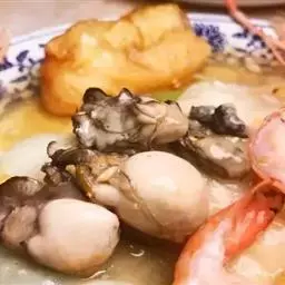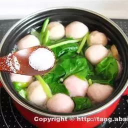 3、在高汤中加入一勺淀粉,在加入少许盐和白胡椒粉;将上面制作的高汤倒入锅中,煮至沸腾透明即可;