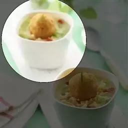 4、取出蒸熟的香菇鹌鹑蛋,倒掉多余的水分,将煮熟的高汤浇在每个香菇鹌鹑蛋上面,撒上葱花即可。