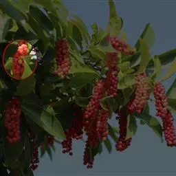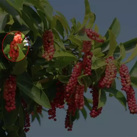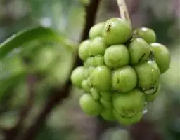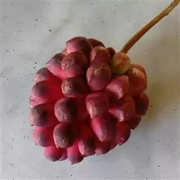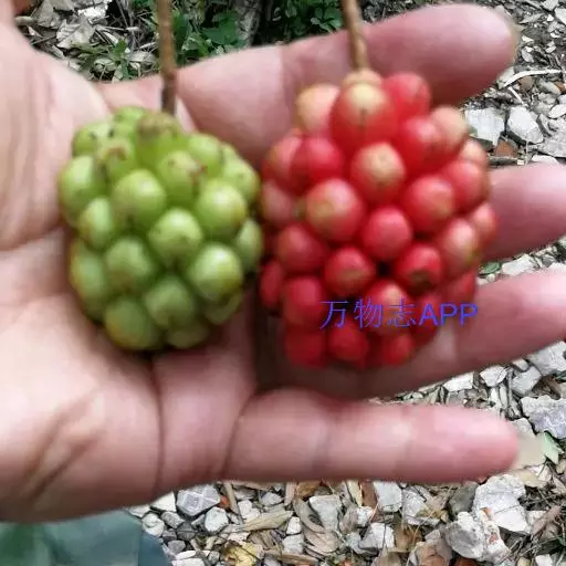 聚合果球形,径1.5-3.5厘米;小浆果倒卵圆形,长8-14毫米,外果皮薄革质,干时显出种子。种子2-3,稀4-5,肾形或肾状椭圆体形,长4-6毫米,宽3-5毫米。