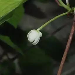 花单生于叶腋,雌雄异株;雄花:花被片白色或淡黄色,8-17片,中轮最大1片,椭圆形,长8-13毫米,宽4-10毫米;花托椭圆体形,顶端伸长圆柱状,不凸出雄蕊群外;雄蕊群球形,直径8-9毫米,具雄蕊30-70枚;雄蕊长1-2毫米,药隔与花丝连成扁四方形,药隔顶端横长圆形,药室几与雄蕊等长,花丝极短。花梗长0.7-4.5厘米;雌花:花被片与雄花相似,雌蕊群椭圆体形或球形,直径约l0毫米,具雌蕊40-60枚;子房宽卵圆形,花柱具盾状心形的柱头冠,胚珠3-5叠生于腹缝线上。花梗长3-13厘米。