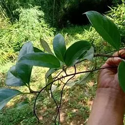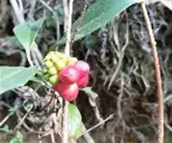 南五味子系藤本植物,各部无毛。叶长圆状披针形、倒卵状披针形或卵状长圆形,长5-13厘米,宽2-6厘米, 南五味子 先端渐尖或尖,基部狭楔形或宽楔形,边有疏齿,侧脉每边5-7条;上面具淡褐色透明腺点,叶柄长0.6-2.5厘米。