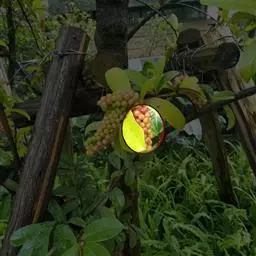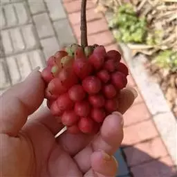 3、搭架:移植后第二年即应搭架。可用水泥柱或角钢做立柱,用木杆或8号铁线在立柱上部拉一横线,每个主蔓处立一竹杆或木杆,竹杆高2.5—3米,直径1.5—5厘米,用绑线固定在横线上,然后引蔓上架,开始时可用强绑,之后即自然缠绕上架。