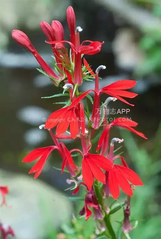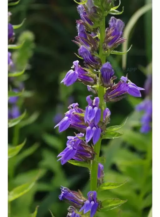 多年生草本,高60-120厘米。根状茎直立,生多数须根。茎圆柱状,通常不分枝,无毛。叶螺旋状排列,在茎的中上部,较密集;无柄;叶片厚纸质,宽披针形至条状披针形,长2.5-5.5厘米,宽3-16毫米,先端渐尖,基部近圆形至阔楔形,两面无毛,边缘有细锯齿。总状花序顶生,长8-35厘米,无毛;苞片叶状,窄披针形,比花短;花梗长5-12毫米,花萼筒杯状钟形,长约4毫米,无毛,裂片三角状披针形,长5-7毫米,宽约2毫米,全缘,无毛;花冠蓝紫色,长2.5-3厘米,近二唇形,外面无毛,内面具长柔毛,上唇2裂长匙形,下唇3裂片椭圆形,裂片边缘密被睫毛;雄蕊在基部以上连合成筒,花丝筒无毛,花药结合线上密被柔毛,仅下方2枚花药先端具笔毛状髯毛。蒴果倒卵形。种子近半圆形,棕红色。花、果期7-9月。