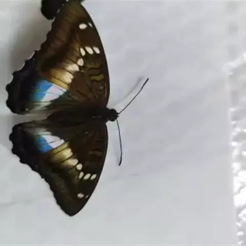 大紫蛱蝶为大型蝶种,翅展约86~110mm。翅紫黑色,有白色斑点点缀其中,雄蝶的翅具强烈紫色虹彩,…