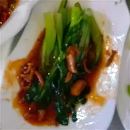 2、先把菜心根端放进沸水中,待根端变得深绿色再把菜心全部放进水中灼1分钟盛起,灼菜心的水倒掉重新把蚝油汁倒入锅中烧开,倒入蒜末再次烧开,关火,把蚝油汁淋在菜心上即可。