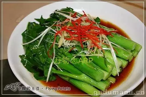 白灼菜心 调味料:调和油、蚝油1又1/2大勺、鲜味汁1大勺、高汤1/4杯、水淀粉、盐少量、鸡精。