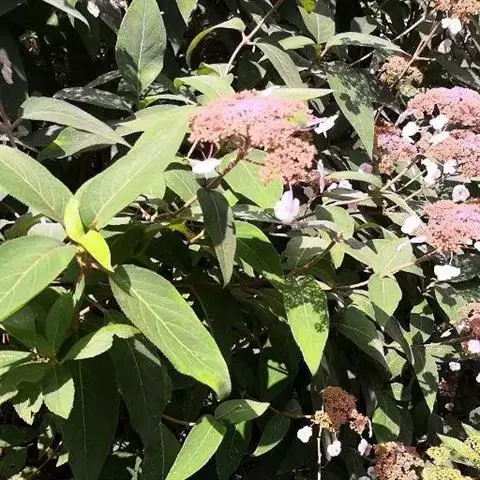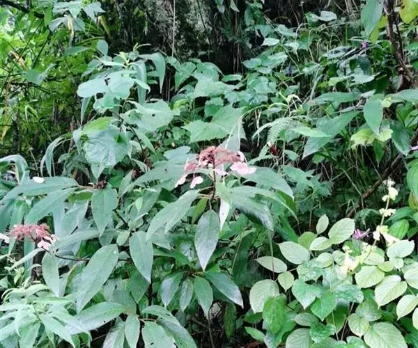 蜡莲绣球(学名:Hydrangea strigosa Rehd.),是虎耳草科、绣球属灌木。小枝圆柱形或微具四钝棱,灰褐色。叶纸质,长圆形、卵状披针形或倒卵状倒披针形;中脉粗壮,上面平坦,下面隆起,侧脉弯拱,沿边缘长延伸,上面平坦;叶柄长被糙伏毛。伞房状聚伞花序大,;不育花萼片4-5,阔卵形、阔椭圆形或近圆形;孕性花淡紫红色,萼筒钟状;花瓣长卵形。蒴果坛状,顶端截平,基部圆;种子褐色,阔椭圆形,具纵脉纹,先端的翅宽而扁平,基部的收狭呈短柄状。花期7-8月,果期11-12月。