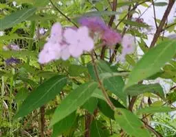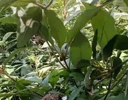 叶纸质,长圆形、卵状披针形或倒卵状倒披针形,长8-28厘米,宽2-10厘米,先端渐尖,基部楔形、钝或圆形,边缘有具硬尖头的小齿或小锯齿,干后上面黑褐色,被稀疏糙伏毛或近无毛,下面灰棕色,新鲜时有时呈淡紫红色或淡红色,密被灰棕色颗粒状腺体和灰白色糙伏毛,脉上的毛更密;中脉粗壮,上面平坦,下面隆起,侧脉7-10对,弯拱,沿边缘长延伸,上面平坦,下面凸起,小脉网状,下面微凸;叶柄长1-7厘米,被糙伏毛。
