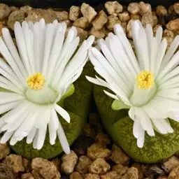 生石花,番杏科生石花属多年生肉质草本植物。植株几乎无茎;花朵较大,颜色艳丽,呈多边形,…