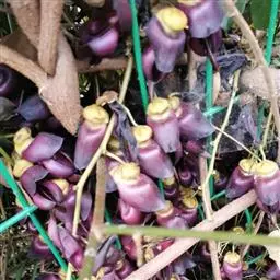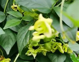 温室或住房养护,需将盆花置于窗前接受光照,要注意通风,防止徒长或落蕾。主蔓长到20cm左右即摘心促进侧蔓生长、增加花朵数量。攀援型品种可设立支架造型,确定开花期可利用温度调节控制,12月至次年2~3月开花的植株可在中温温室养护,来年5月开花的植株可置于冷室越冬。开花期为保证开花数量,随时摘去开谢的花朵,延长植株开花期。花后结实,各部位荚果成热期不同,需随熟随采。