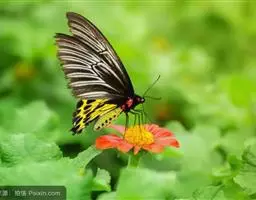 金裳凤蝶是凤蝶科、裳凤蝶属的动物。金裳凤蝶身体呈黑色,头、颈和胸侧有红毛,腹部有黑黄两色相间条纹,…