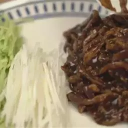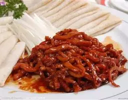 京酱肉丝,是一道知名度很高的菜肴,它是北京菜中的经典代表菜之一。制作时选用猪瘦肉为主料,辅以甜面酱…