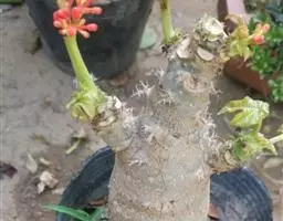 瓶干树又名佛肚树,学名是Jatropha podagrica Hook.,瓶干树的原生地是澳洲的昆…