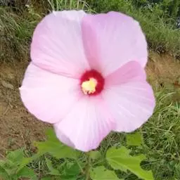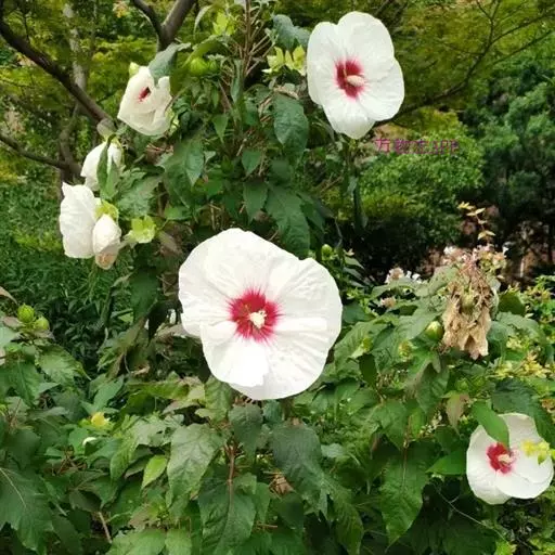 落叶灌木状。叶大、广卵形,叶柄、叶背密生灰色星状毛。花大,单生于叶腋,有白、粉、红、紫等色。