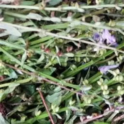 性状:半枝莲长15~55厘米,无毛或者花轴上有稀疏的被毛;根较为纤细;茎细丛生,呈方柱形;表面暗紫色或棕绿色;叶对生,有短柄;叶片多皱缩,展平后呈三角状卵形或披针形,长1.5~3厘米,宽0.5~1厘米;先端钝,基部宽楔形,全缘或有少数不明显的钝齿;上表面暗绿色,下表面灰绿色。花单生于茎枝上部叶腋,花萼裂片钝或较圆;花冠二唇形,棕黄色或浅蓝紫色,长约1.2厘米,被毛。果实扁球形,浅棕色。气微,味微苦。