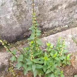 茎直立,高12~35(55)厘米,四棱形,基部组1~2毫米,无毛或在序轴上部疏被紧贴的小毛,不分枝或具或多或少的分枝。