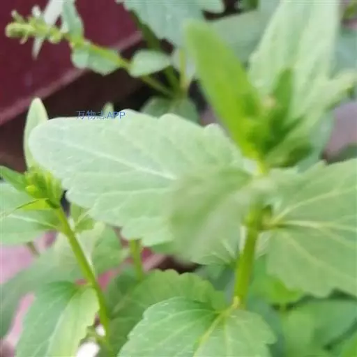 叶具短柄或近无柄,柄长1~3毫米,腹凹背凸,疏被小毛;叶片三角状卵圆形或卵圆状披针形,有时卵圆形,长1.3~3.2厘米,宽0.5~1(1.4)厘米,先端急尖,基部宽楔形或近截形,边缘生有疏而钝的浅牙齿,上面橄榄绿色,下面淡绿有时带紫色,两面沿脉上疏被紧贴的小毛或几无毛,侧脉2~3对,与中脉在上面凹陷下面凸起。