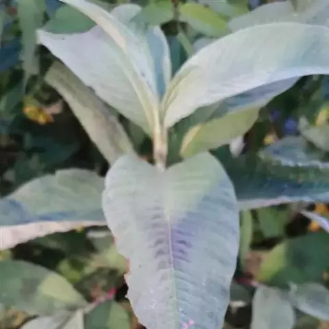 叶片卵形或近圆形,长3-9厘米,宽2-8厘米,顶端渐尖,基部微心形或圆形,下延成柄,全缘,背面叶脉微凸起;叶柄长1-3厘米,上有凹槽。