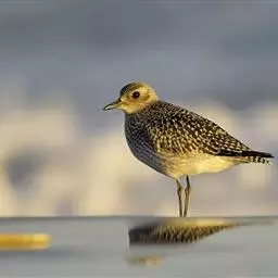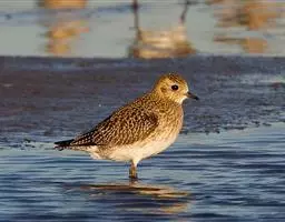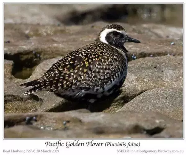金鸻(学名:Pluvialis fulva):属中型涉禽。体重98-140克,体长230-252毫米。夏季全身羽毛大都呈黑色,背上有金黄色斑纹。翅膀又尖又长,飞行能力很强,秋天迁徒飞到很远的地方去越冬。跗蹠修长,胫下部亦裸出。中趾最长,趾间具蹼或不具蹼,后趾形小或退化。翅形尖长,第1枚初级飞羽退化,形狭窄,甚短小;第2枚初级飞羽较第3枚长或者等长。三级飞羽特长。尾形短圆,尾羽12枚。