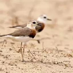 东方鸻:属小型涉禽。体重80-95克,体长220-255毫米。在夏季,前额、眉纹和头的两侧白色,头…