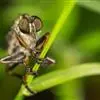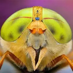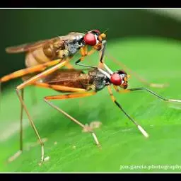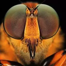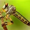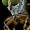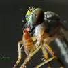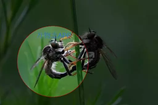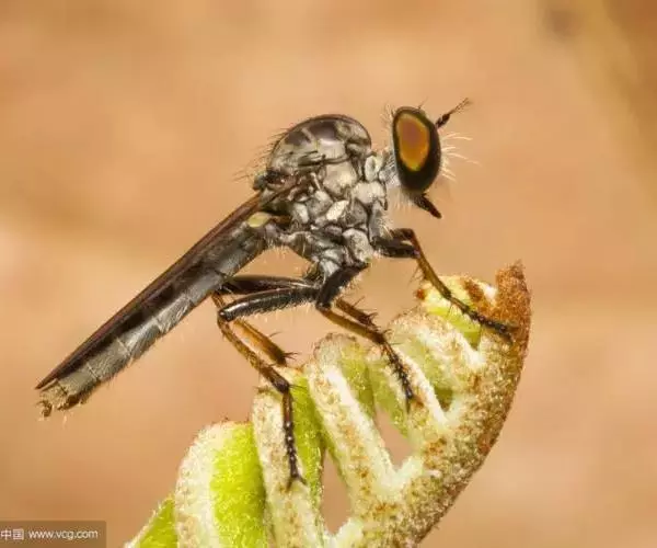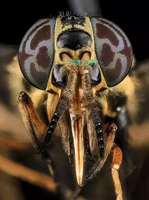 牛虻虫 食虫虻除了身体强壮、飞行快外,还得有良好的信息接收系统,即视力要好。它具有大而亮的大眼睛。视力如此重要,强大的保护是必须的。为了防止猎物挣扎而损伤眼睛,食虫虻复眼的周围特别在前方长有众多粗大的刚毛,就是为了保护眼睛不被伤害。捕捉到猎物后,它们用消化液注入到猎物中,把猎物消化成液体后再吸入。