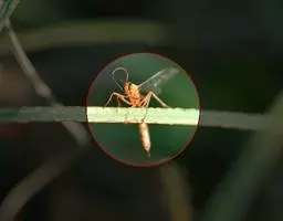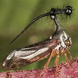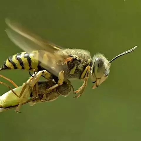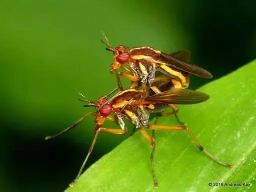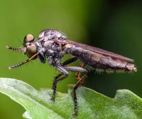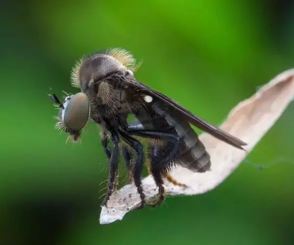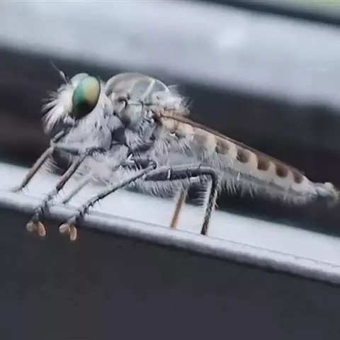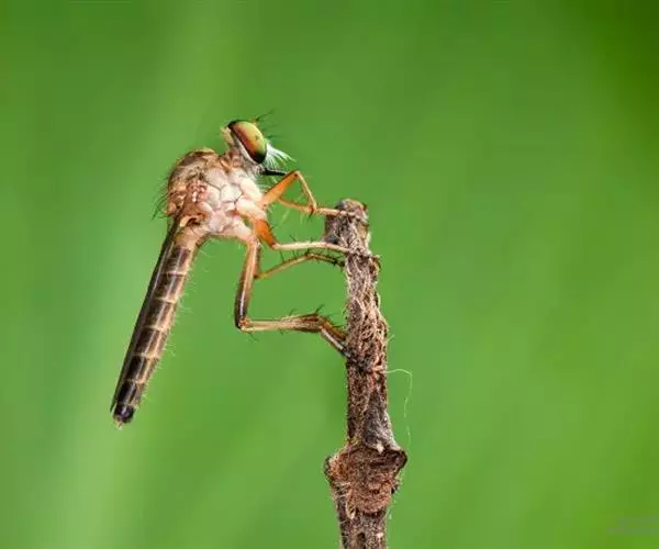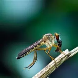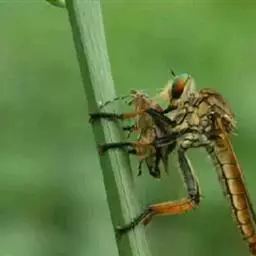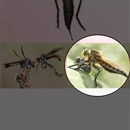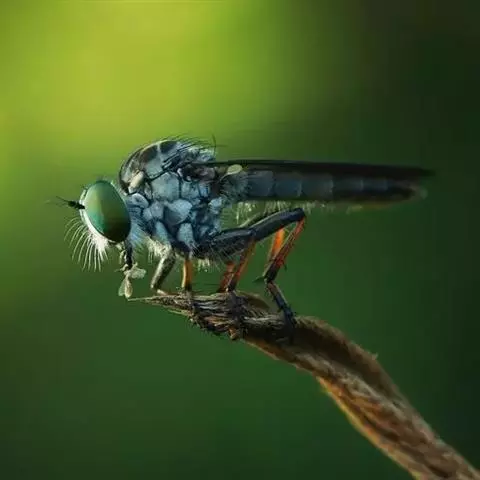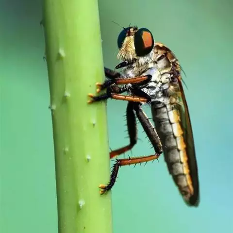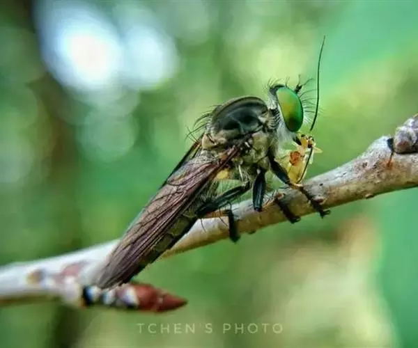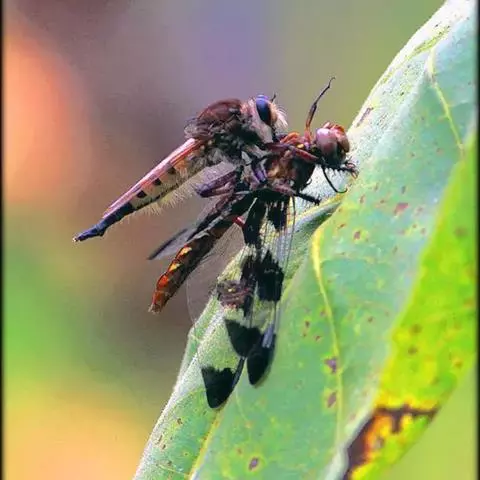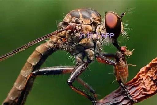 食虫虻的这些特性,使它们成为昆虫世界中的魔鬼。人们在一些恐怖片、电子游戏中也常用它作为模型来塑造角色。图中所示的是一只雄性中华单羽食虫虻捕食斑须蝽。有些雄性食虫虻甚至会把猎物作为“彩礼”送给雌性,期望得到雌性的青睐。食虫虻的幼虫通常是取食植物的。