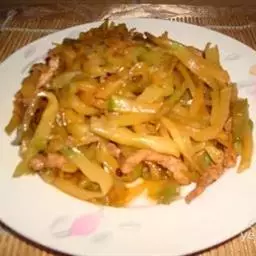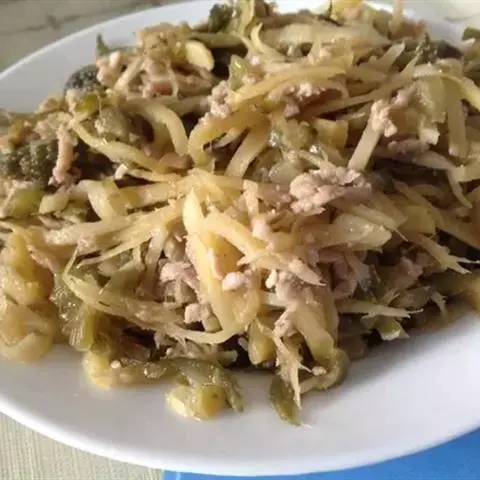 榨菜肉丝是四川省传统的名菜,属于川菜。此菜在四川家庭和中低档饭馆常年制作,原料易得,操作简便,咸淡…
