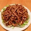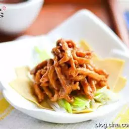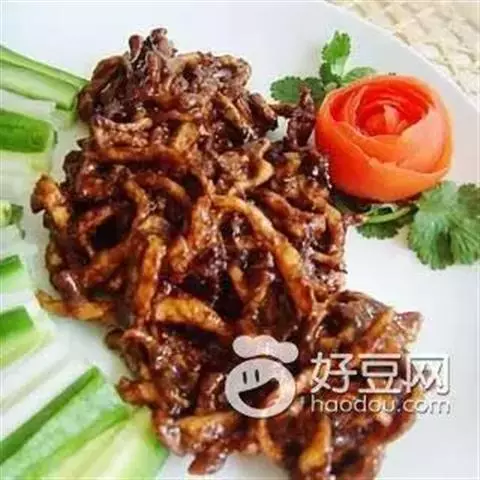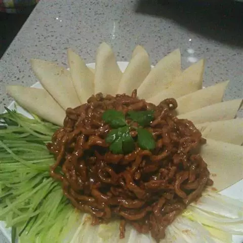 京酱肉丝,是一道知名度很高的菜肴,它是北京菜中的经典代表菜之一。制作时选用猪瘦肉为主料,辅以甜面酱…