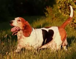 8.头型要属长条形,长、直而狭窄,并常常高昂。额颅要稍凸,鼻色要为褐色或黑色。