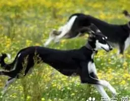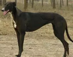 脑袋从两耳间到后脑的地方略呈拱形。耳朵大且竖立,未剪耳,耳根与外眼角对齐。面颊逐渐变细,是口吻呈清楚的锥形。颈部倾斜且干净,从建部起向上至支撑着头部,略呈拱形。前肢长、细、直。腕部竖直、精致且强壮。腿脚呈兔形足,脚窄且脚细长。尾巴细长,尾尖细长,尾巴的长度使它能碰到飞节。当狗走动时,尾巴欢快地运动或翻卷在背上 。