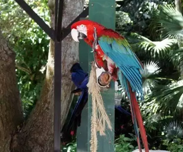 红绿金刚鹦鹉 红绿金刚鹦鹉通常生活在北部热带森林,在海拔450-1400米之间的高度可以发现它们的踪迹。通常会避开定期被淹没的沼泽地区和雨林,而将这种湿地栖息地留给了其同属近亲的蓝金刚鹦鹉。在山脉的南部和东部,它占据了更多的林地,包括沿河的落叶林或长廊林。喜欢飞生活在开阔地带。生存和分布在很大程度上取决于作为筑巢地点主要提供者的大树和岩石峭壁的存在。另一方面,红绿金刚鹦鹉会远离城镇、村庄和人类所有居住地,因为它们是密集狩猎的受害者,并且经常被捕以从事鸟类交易。这种鹦鹉大部分时间都生活在海拔1000米以下的地方。在委内瑞拉可以上升到1400米。