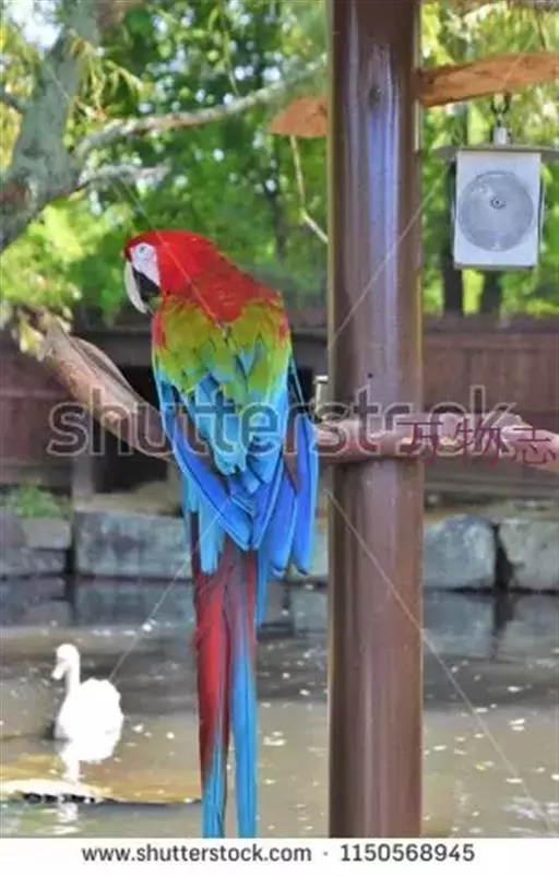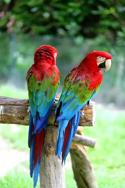 红绿金刚鹦鹉(学名:Ara chloropterus):是鹦鹉科、金刚鹦鹉属的大型攀禽。体长90-95厘米,翼展125厘米,体重1050-1700克,寿命80年。成鸟的头、颈部、胸部和翕两侧是美丽的红色羽毛。肩和三级飞羽绿色。背部,臀部和尾巴上面是蓝色。尾巴是红色和蓝色相间。尾覆羽浅蓝色。下颚骨的上层主要是白色或象牙色,较低的下颌骨黑色。面颊是裸露的皮肤,覆盖着红白色的羽毛呈现蛇状细纹。虹膜淡黄色。脚黑色。