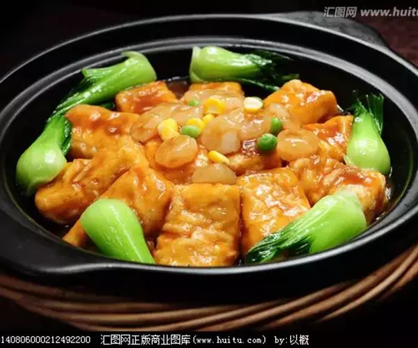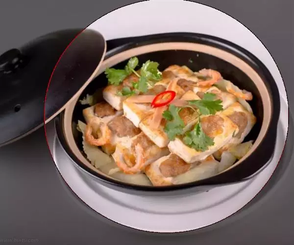 豆腐煲是一道美味可口的名肴,属于粤菜系。主料:北豆腐、蟹味菇、瑶柱、鲜茶树菇