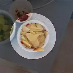 把辅料过油时,最后才把红椒过油,防止有颜色的蔬菜长时间煎炸退色。