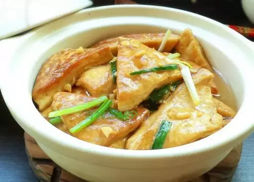沙锅里撒麻油,是可以让脆皮豆腐煲上桌的时候保持热气腾腾。豆腐和毛豆富含蛋白质,健脑、养颜,对青少年、脑力工作者很有好处。