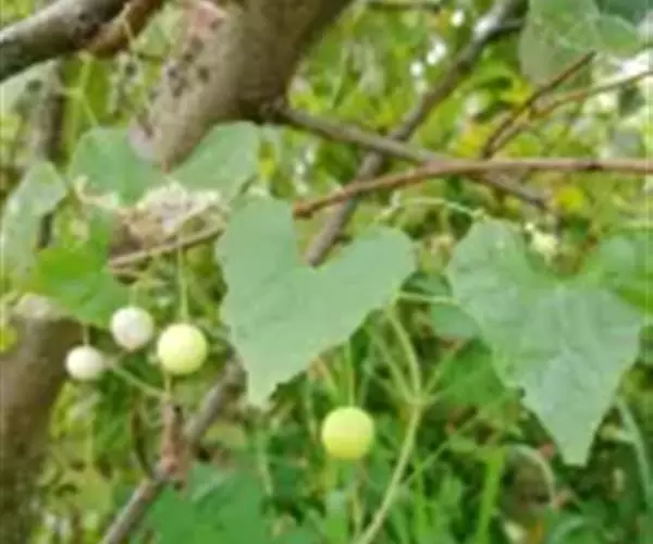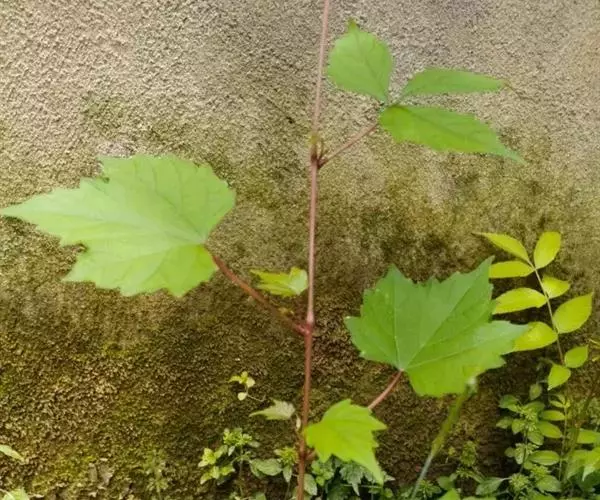 木质藤本。小枝圆柱形,有纵棱纹。卷须2-3叉分枝,相隔2节间断与叶对生。叶为单叶,心形或卵形,3-5中裂,常混生有不分裂者,长3.5-14厘米,宽3-11厘米,顶端急尖,基部心形,基缺近呈钝角,稀圆形,边缘有急尖锯齿,叶片上面无毛,下面脉上被稀疏柔毛,边缘有粗钝或急尖锯齿;基出脉5,中央脉有侧脉4-5对,网脉不明显突出;叶柄长1-7厘米,被疏柔毛;花序梗长1-2.5厘米,被疏柔毛;花梗长1-3毫米,疏生短柔毛;花蕾卵圆形,高1-2毫米,顶端圆形;萼碟形,边缘波状浅齿,外面疏生短柔毛;花瓣5,卵椭圆形,高0.8-1.8毫米,外面几无毛;雄蕊5,花药长椭圆形,长甚于宽;花盘明显,边缘浅裂;子房下部与花盘合生,花柱明显,基部略粗,柱头不扩大。果实近球形,直径0.5-0.8厘米,有种子2-4颗;种子长椭圆形,顶端近圆形,基部有短喙,种脐在种子背面下部向上渐狭呈卵椭圆形,上部背面种脊突出,腹部中棱脊突出,两侧洼穴呈狭椭圆形,从基部向上斜展达种子顶端。花期7-8月,果期9-10月。