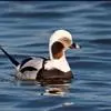 长尾鸭体长约58厘米,是中等体型的灰、黑及白色鸭,中央尾羽特长,雄鸟胸部的黑色斑块为特征。…