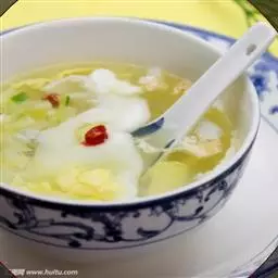 (3) 烧开清汤吃好味,将鱼丸放入汤内再烧开即成。