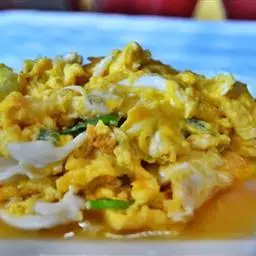 茉莉花炒蛋是一道由茉莉花、鸡蛋、白酒等做成的美食。